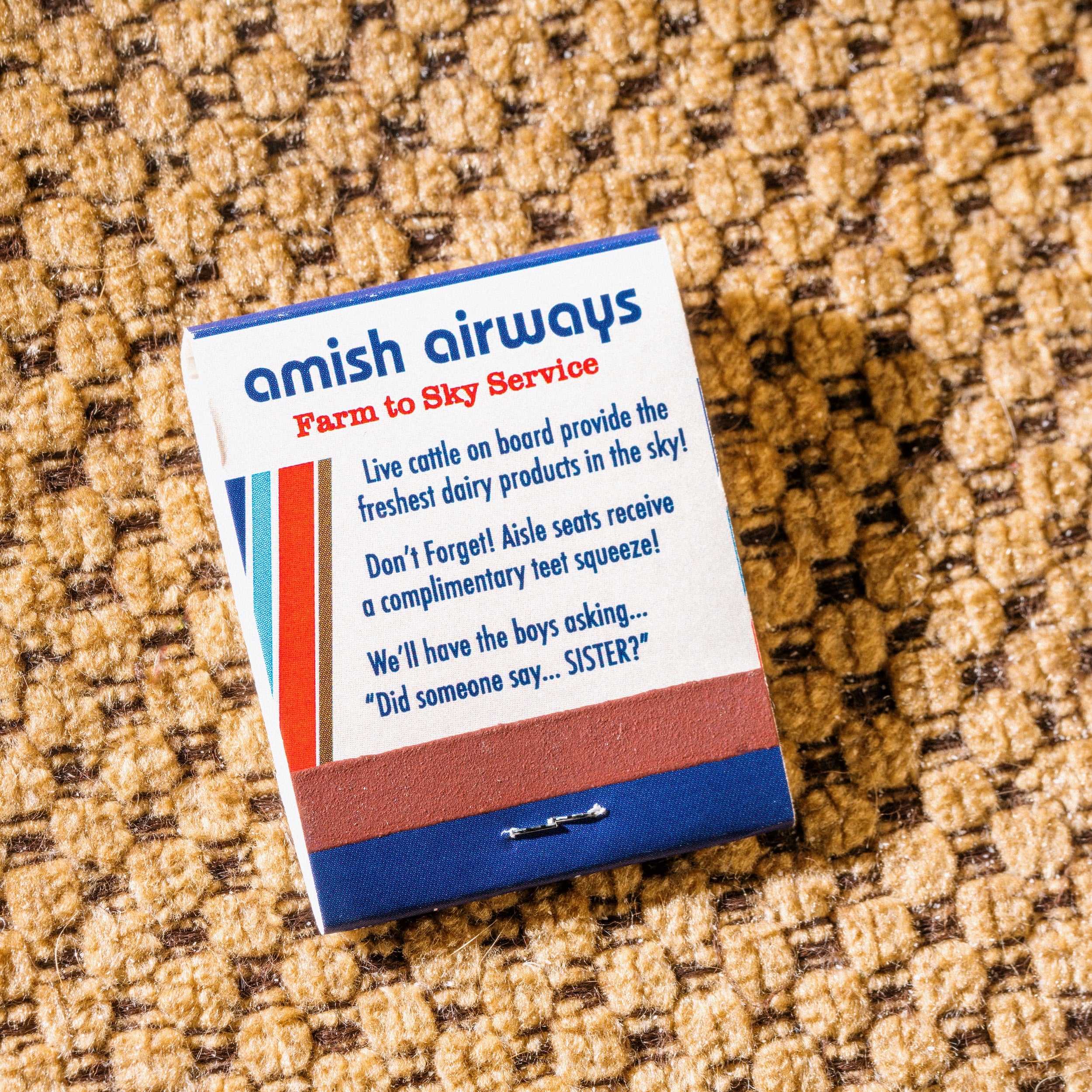 Yeah, matches are USEFUL. And we know everyone likes lighting shit on fire occasionally... no? Just me and my student loan paperwork? Oh, ok. Anyway, throw a matchbook in with that candle you’re gifting! Leave it as the tip for your server! We know they’ll be just as surprised as you once they read what businesses are selling these days. Yikes!Old School Matchbooks Pack: Amish Airways