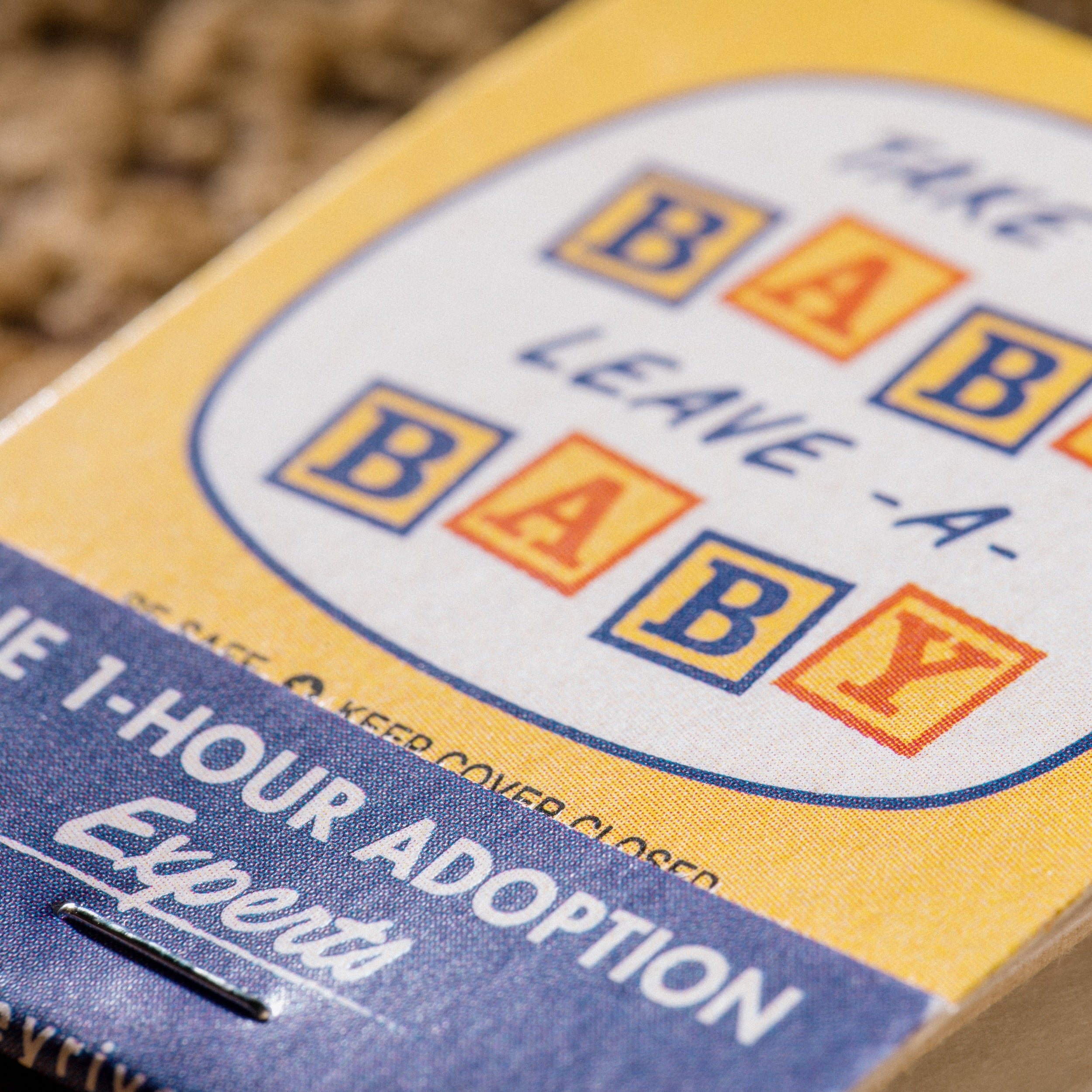 Includes 4 matchbooks: Office Buddies Cubicle Puppets, Take-a-Baby Leave-a-Baby, Mountain Fresh Meth, and Amish Airways.